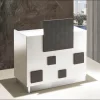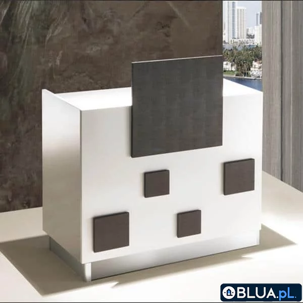 Recepcja przeznaczona do gabinetu kosmetycznego, medycznego. Prosta, niewielkich wymiarów idealnie nadaje się do mniejszych pomieszczeń. Recepcja w białym kolorze o wysokim połysku. Posiada dodatkowe elementy dekoracyjne, których kolor można samemu dobrać do wnętrza. Recepcja Cube posiada wysuwaną szufladkę, dwie półki, zamykaną na kluczyk szufladę oraz szafkę z samo domykającymi się drzwiami. Geometryczne kształty, a zarazem wyjątkowy wygląd sprawdza się w każdym wnętrzu. Dostępne kolory to wenge, modrzew biały, dąb bardolino. Wymiary (szer. x gł. x wys.): 1000 x 470 x 920 mm
