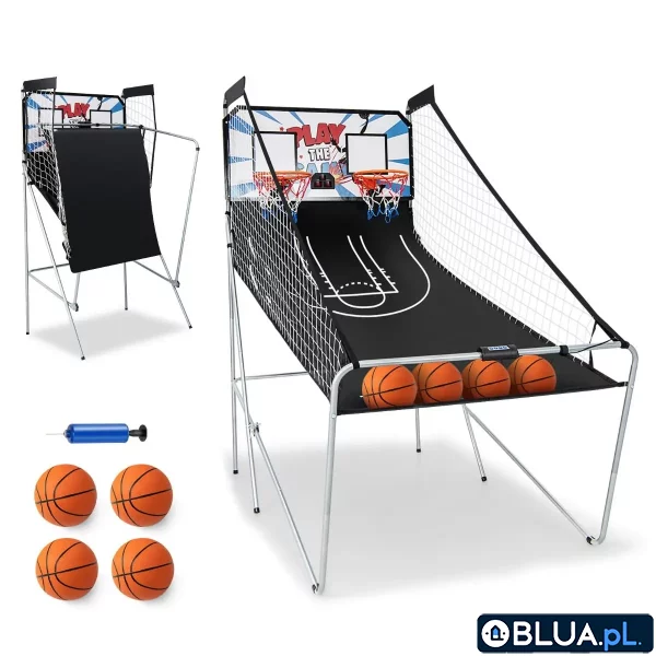Automat do gry w koszykówkę Uwielbiasz koszykówkę, ale nie masz kosza do gry? Chcesz ćwiczyć rzucanie do celu? Wybierz ten automat! Możesz ustawić go wszędzie i cieszyć się ulubioną zabawą. Jest to idealna rozrywka zarówno dla dzieci, jak i dla dorosłych. Automat do gry w koszykówkę możesz szybko i łatwo zamontować i ustawić go w pokoju, ogrodzie czy zabrać ze sobą na wakacje, a nawet pod namiot! Zestaw waży niewiele, przez co jest bardzo łatwy w przenoszeniu. Do uruchomienia gier (8 różnych trybów) nie potrzebujesz gniazdka z prądem, a jedynie 3 baterie AA. Z pewnością będzie to ciekawa atrakcja na przykład na wyjeździe rodzinnym pod namiot! Zorganizuj rodzinne zawody sportowe i graj — automat do gry w koszykówkę Koszykówka to sport, który wzmacnia mięśnie, zachęca do pracy zespołowej i rozwija poczucie własnej wartości. Ćwiczenia fizyczne są bardzo korzystne dla zdrowia, nawet w formie zabawy przy automacie do gry w koszykówkę. Oprócz tego, że ćwiczenia zachęcają do zdrowego trybu życia, pozwalają dzieciom na odkrywanie i rozwój swoich pasji. Dzięki temu urządzeniu jedną z pasji dziecka może się stać właśnie koszykówka! Jest dynamicznym i przyjemnym sportem, przynosi ogromne korzyści na poziomie fizycznym, poznawczym i społecznym. Nie wahaj się i zainwestuj w automat do gry w koszykówkę — szczególnie dobrze sprawdzi się w jesienne i zimowe dni, kiedy na dworze panuje szaruga czy niekorzystne warunki pogodowe. Elektroniczny stół do koszykówki Automat do gry w koszykówkę jest inspirowany grami NBA i daje wrażenie przebywania na stadionie. Usłyszysz dźwięk fanów i muzykę, elektroniczna tablica wyników pokaże punktację, aktywowana dźwignią na czujnik. Możesz też wybrać tryb 2 lub 1 gracza oraz wstrzymać czas gry. Boczne ścianki z siateczki zapobiegają wypadaniu piłki ze stołu, przez co nie gubi się ona podczas gry. Montaż jest bardzo łatwy, wystarczy dopasować elementy do siebie. Zapewnij sobie zabawę i rywalizuj z innymi graczami! Automat do gry w koszykówkę Doskonała zabawa na długo - automat do gry w koszykówkę oferuje 8 różnych trybów gry, dzięki czemu gwarantuje doskonałą zabawę na długi czas. Zestaw jest idealną grą zręcznościową dla dzieci i dorosłych Czujniki ruchu - automat posiada wbudowane czujniki ruchu i wyświetlacze LCD, dzięki którym śledzenie punktacji i wyników jest niezwykle proste. Efekty dźwiękowe i kolorowe światła tworzą wyjątkową atmosferę gry Wysokiej jakości materiały - zestaw został wykonany z najwyższej jakości stali, płyty MDF oraz tworzywa sztucznego, dzięki czemu gwarantuje niezrównaną wytrzymałość i trwałość Łatwość przechowywania - dzięki składanej konstrukcji, gra jest niezwykle poręczna i łatwa do przechowywania Łatwość montażu - gra jest bardzo prosta zarówno w montażu. Wszystkie elementy potrzebne do instalacji zostały dołączone do zestawu W zestawie Automat do gry w koszykówkę 4 piłki Pompka