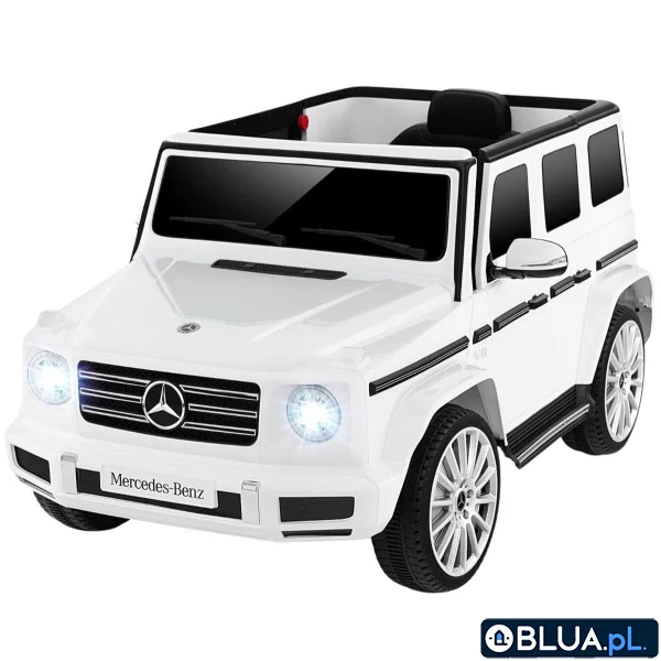 Nasz licencjonowany dziecięcy samochód elektryczny Mercedes-Benz G500 to gwarancja świetnej zabawy! Dzieci mogą prowadzić pojazd za pomocą kierownicy, dźwigni i pedału przyspieszenia, podczas gdy rodzice mogą korzystać z pilota zdalnego sterowania. Podwójnie zamykane drzwi ułatwiają wsiadanie i wysiadanie, a napęd na 4 koła i powolny start zapewniają bezpieczniejszą i stabilniejszą jazdę. Zabawkowy pojazd dodatkowo odtwarza muzykę i może łączyć się z innymi urządzeniami. Licencjonowany model Mercedes-Benz G500: Ten samochód terenowy ma oficjalną licencję Mercedes-Benz G500 i jest idealnym prezentem dla dzieci z okazji urodzin lub świąt. Posiada 4 silniki napędowe i dodatkowy silnik sterujący zapewniający większą moc jazdy. Akumulator 12V z zabezpieczeniem przed przeładowaniem jest bezpieczny w użyciu. Bezpieczna jazda: Dzięki funkcji powolnego startu, zabawkowy pojazd nie będzie wzbudzał lęku u dzieci. Ponadto antypoślizgowe i odporne na zużycie koła dobrze sprawdzają się na różnych typach dróg i pozwalają na nieograniczoną zabawę. Natomiast 4 koła z systemem zawieszenia zapewniają płynniejszą jazdę. Różne możliwości sterowania: Dzieci mogą cieszyć się wciągającymi wrażeniami z jazdy dzięki realistycznej kierownicy, dźwigni i pedałowi przyspieszenia. Równie dobrze rodzice mogą sterować samochodem za pomocą pilota dołączonego do zestawu. Specjalnie opracowany tryb bujania dodatkowo urozmaica zabawę najmłodszych. (Uwaga: baterie do pilota 2x AAA nie są zawarte w zestawie) Detale przyjazne dzieciom: Jasne reflektory sprawiają, że ten samochód jest jeszcze bardziej atrakcyjny. Ponadto obracające się o 90° lusterka boczne i drzwi z podwójną blokadą zapewniają radość z jazdy i bezpieczeństwo. Przestronne siedzenie z pasem bezpieczeństwa zapewnia dzieciom większy komfort podczas zabawy. Dodatkowa rozrywka: Na kierownicy znajdują się przyciski efektów dźwiękowych- muzyki i klaksonu, zapewniające świetną rozrywkę. Panel muzyczny z wyświetlaczem LED obsługuje połączenia USB, MP3 i WLAN. Można więc podłączyć telefon, aby odtwarzać ulubioną muzykę. Ponadto komunikat głosowy poinformuje Cię wcześniej, jeśli bateria będzie miała niski poziom naładowania. Zawartość opakowania: 1 x Samochód elektryczny dla dzieci 1 x Pilot zdalnego sterowania 1 x Ładowarka 1 x Instrukcja obsługi