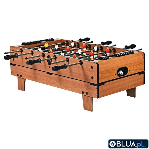 Jeśli kochasz piłkę nożną, a do tego uwielbiasz grać w cymbergaja, ping ponga lub bilard i chcesz cieszyć się ekscytującymi meczami we własnym domu, to ten wielofunkcyjny stół do gier bardzo Ci się spodoba. Zmień dzięki tej zabawce swój salon lub pokój dziecka w prawdziwą salę zabaw! W wielkich domach można mieć wydzielony cały pokój i mieć w nim prawdziwy stół do gier, takich jak piłkarzyki, ping pong, bilard czy cymbergaj. Jednak w mieszkaniu zorganizowanie takiego pokoju może być trudne, choćby ze względu na niewystarczający metraż. Ten stół do gry 4w1 piłkarzyki, bilard, tenis stołowy i cymbergaj będzie bardzo dobrym rozwiązaniem. Możesz rozstawić go w salonie, przedpokoju i dziecięcym pokoiku. Stół wielofunkcyjny do gier — jak grać? Dzięki tej zabawce możesz grać w gry towarzyskie takie jak piłkarzyki, bilard, ping pong lub cymbergaj — wystarczy wymienić blat na odpowiedni do gry w którą chcemy zagrać. Jak grać w piłkarzyki lub inne gry? Oczywiście można stosować się do powszechnych zasad ale my sugerujemy pozwolić swoim dzieciom na spróbowanie różnych możliwości — tego, w jaki sposób trzymać uchwyty, jakie strategie stosować, a nawet wymyślać własne zasady gry. W piłkarzyki, bilard, ping pong lub cymbergaja można grać samotnie, ćwicząc swoje ruchy. Jednak najwięcej zabawy daje rozgrywanie meczów drużynowych! Najważniejszym celem tej zabawki — stołu wielofunkcyjnego do gier — jest dostarczenie dziecku, a także dorosłym dobrej zabawy! Dlaczego warto kupić stół do gry 4w1? Dzieci będą się świetnie bawić przy takim stole. Mogą grać klasycznie lub same ustalać zasady gry w dostępne gry zręcznościowe. Zauważysz wtedy, że oprócz dobrej zabawy i ćwiczeń koordynacji oko-ręka, ten stół do gry 4w1 piłkarzyki, cymbergaj, ping pong, bilard działa również jak zabawka edukacyjna — dzieci uczą się rozwiązywać różne problemy, planować, negocjować i definiować umowy. Koordynacja ruchowa i wyobraźnia — stół do gier 4w1 Przekonaj się sam, jak ten stół do gier 4w1 może przenieść Twoje dzieci i Ciebie w całkowicie inny świat — w świat zabawy i śmiechu. Sprawdź, jak dobra zabawa może zmienić Twój dzień i poprawić nastrój wszystkich w domu. Rozbudź swoją fantazję, kreatywność, ucz się grać drużynowo lub rywalizuj! Ta zabawka integruje, uczy zdrowej rywalizacji oraz daje dzieciom ciekawą formę rozrywki i odrywa je od ekranu telewizora czy komputera. Cechy Zestaw 4 mini gier: piłkarzyków, bilardu, ping ponga oraz air hockeya! Doskonała zabawa na długi czas - zestaw 4 mini gier (piłkarzyki, ping pong, bilard, cymbergaj) zapewni Twojemu dziecku niekończącą się zabawę i niezapomniane wspomnienia Rozwój psychoruchowy - zestaw jest idealny do rozwijania zdolności psychoruchowych oraz koordynacji ręka-oko Wysokiej jakości materiały - zestaw został wykonany z najwyższej jakości płyty oraz tworzywa sztucznego, dzięki czemu gwarantuje niezrównaną wytrzymałość, stabilność i trwałość Opakowanie zawiera 1 x blat do piłkarzyków 6 x tyczki do piłkarzyków 2 x piłki 2 x tablice wyników 1 x pudełko z kulami bilardowymi 1 x kreda 1 x trójkąt bilardowy 2 x kije bilardowe 1 x blat do hokeja 2 x krążki hokejowe 2 x kije hokejowe 1 x blat tenisowy 2 x piłki tenisowe 2 x paletki 2 x uchwyty do siatki 1 x siatka do tenisa 1 x instrukcja