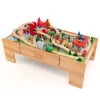 Stół dwustronny z torem samochodowym i powierzchnią do nauki Nasz 100-elementowy stół z torem oczaruje dzieci i pozwoli wyobraźni szaleć podczas wspaniałej zabawy. Drewniany stół kolejowy wykonany jest z wysokiej jakości materiałów, takie jak MDF, lite drewno bukowe i tworzywo PP, z których wszystkie są bezwonne i trwałe dla bezpiecznego i długotrwałego użytkowania. Gładka powierzchnia i zaokrąglone rogi chronią delikatną skórę dziecka. Szyny z połączeniami jak puzzle sprawiają, że montaż jest o wiele i prostszy i trwalszy. 100 elementów i kolorowa powierzchnia do zabawy pozwalają dzieciom na samodzielne odkrywanie i poznawanie nowego świata. Dzięki dwustronnej powierzchni blatu, stół kolejowy łatwo przekształca się w stół do nauki. W szufladzie dzieci mogą przechowywać artykuły papiernicze, książki, zabawki i przekąski. Kompletny zestaw toru: Ten kreatywny zestaw dla dzieci zawiera 100 elementów, w tym pojazdy, sygnalizację świetlną, figurki, budynki, tory kolejowe, lokomotywę zasilaną bateriami (wymaga 1 baterii AAA, nie jest dołączona do zestawu) itp. co pozwala dzieciom na zbudowanie własnego miasteczka z trasą. Jasne kolory i żywy wygląd z pewnością przyciągną uwagę Twojego dziecka. Odwracalny blat 2w1: Jedna strona blatu jest ozdobiona kolorowymi ilustracjami pociągów, a druga to tablica. Dlatego ten wielofunkcyjny stół dla dzieci może być używany jako stół do zabawy jak i stół do nauki, w zależności od różnych potrzeb dzieci. Materiał pierwszej klasy i zwiększone bezpieczeństwo: Wykonany z solidnej płyty MDF stół jest bardzo stabilny i trwały. Zaokrąglone rogi i pozbawiona drzazg powierzchnia skutecznie chroni dzieci przed zadrapaniami. Tor z drewna bukowego jest solidny i nie do zdarcia. Idealny wybór na prezent dla dzieci: Ten drewniany zestaw desek nie tylko przynosi niekończącą się zabawę, ale także pomaga rozwijać wyobraźnię dzieci, percepcję przestrzenną, zdolności poznawcze i sprawność manualną. Ten edukacyjny zestaw będzie doskonałym prezentem dla Twoich maluchów. Łatwe do zabawy i przechowywania: Elementy można przyczepić do siebie za pomocą magnesu, a tory są połączone jak puzzle, co ułatwia zabawę. Można również umieścić zdejmowany blat na podłodze, aby uzyskać więcej miejsca do budowania. Dodatkowo wbudowana szuflada zapewnia dużo miejsca do przechowywania akcesoriów. Opakowanie zawiera: 1 x 100-elementowy zestaw elementów 1 x stół 1 x instrukcja