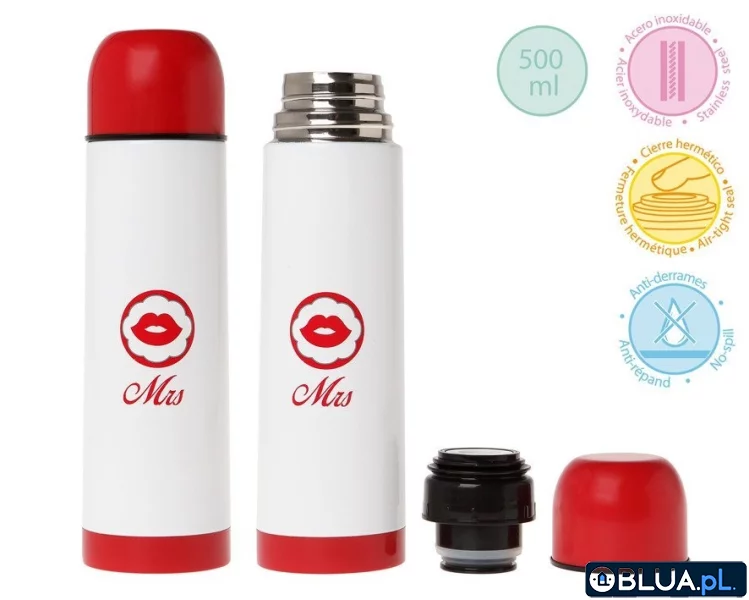 Termos na napoje 500 ml, Mrs, biało-czerwony, Kiokids OUTLET