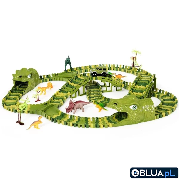 Zabawkowy tor samochodowy z dinozaurami Tor samochodzikowi dla dzieci utrzymany w świecie prehistorycznych jaszczurów i dzikiej, pierwotnej dżungli. Najlepszy prezent dla dzieci które są fanami dinozaurów i samochodzików. Zabawa przy składaniu toru w najróżniejsze trasy i samej jazdy po nich rozwija sprawność manualną oraz wyobraźnię. Wykonany z nietoksycznych materiałów, jest przyjazny dla środowiska, trwały i bezpieczny w użyciu. Jurajska przygoda: Tor przenosi dzieci do epoki dinozaurów, podążając nim wyruszą w ekscytującą podróż. Na szerokim torze jest dużo miejsca, aby samochody mogły przejeżdżać przez mosty, między monstrualnymi jaskiniami i pokonywać kolejne zakręty. Rozwój manualny i umysłowy: 240 elementów można łączyć w różne kształty zapewniające wiele zakrętów, górek i ekscytujących tras. W ten sposób dziecko rozwija wyobraźnię i zmysł przestrzenny, a także zdolności manualne i cierpliwość. Stabilny i trwały materiał: Tor samochodowy wykonany jest z podlegających recyclingowi i wytrzymałych tworzyw PP i ABS. Oba materiały są nietoksyczne i bezwonne, nie szkodzą zdrowiu. Ponadto są one bardzo trwałe i nie ulegają z czasem deformacji. Doskonały prezent dla dzieci: Idealny prezent na te największe okazje jak urodziny i święta dla dzieci powyżej 3 roku życia. Posiada 3 kolory kamuflażu, które tworzą leśną atmosferę, oraz dinozaury które pobudzą ciekawość świata u dziecka. Łatwy do złożenia i przechowywania: Dzieci w wieku powyżej 3 lat mogą go złożyć na różne sposoby i to w krótkim czasie bez ryzyka zadrapań. Tor można łatwo zdemontować i przechowywać, gdy nie jest używany, a także łatwo go przenosić. Cechy: Zestaw elementów które przeniosą dzieci do epoki dinozaurów Łatwy do złożenia i rozwijający sprawność manualną Nietoksyczne i bezzapachowe materiały, która zapewniają bezpieczeństwo Dobrze połączony i stabilny tor do wyścigów samochodzików Łatwy i bezpieczny montaż zajmujący kilka minut Opakowanie zawiera: 240 x elementy toru dinozaurów do samochodów zabawek 8 x dinozaury 4 x drzewa 2 x widły 2 x tunele w kształcie potworów 2 x mosty 1 x zabawkowy samochód (baterie nie są dołączone)