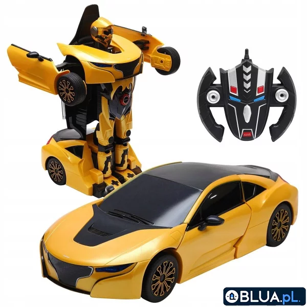 Samochód robot zdalnie sterowany Auto robot na pilota to doskonały wybór dla małego miłośnika motoryzacji. Zabawka ta pozwala na doskonalenie umiejętności sterowania pojazdem, co stanowi idealne zajęcie na długie godziny. W skład zestawu wchodzi m.in. pilot pozwalający na kontrolowanie toru poruszania się auta z odległości nawet 80 metrów. Co więcej, zabawka została skonstruowana w taki sposób, by po kliknięciu jednego przycisku zmieniała swoją formę na robota! Takie rozwiązanie daje jeszcze więcej możliwości zabawy, dlatego samochód robot zdalnie sterowany jest idealnym pomysłem dla prezent dla małych użytkowników, którzy kochają emocjonujące, interaktywne produkty. Dodatkowe opcje auta robota na pilota Auto robot na pilota zostało wyposażone również w wiele innych udogodnień, takich jak m.in. efekty dźwiękowe wydawane w trakcie poruszania się. Dzięki temu zabawa staje się realistyczna, jeszcze bardziej trafiając w gusta małych użytkowników. Co więcej, samochód zmieniający się w robota może uzyskiwać imponującą prędkość, sięgającą nawet 5 km/h. Jest to tempo bezpieczne, a zarazem na tyle szybkie, by dziecko mogło spędzać długie godziny na nauce sterowania samochodem bez obijania nim o przeszkody. Wytrzymała zabawka na lata Ogromnym atutem samochodu zmieniającego się w robota jest także jakość jego wykonania. Zabawka powstała z tworzywa ABS, które jest lekkie, a jednocześnie odporne na uszkodzenia mechaniczne. Dzięki temu dziecko może bez problemu bawić się pojazdem nawet przez kilka lat. Aby zasilić zabawkę, konieczne jest zakupienie baterii pozwalających na sterowanie pilotem oraz naładowanie auta bezpośrednio z domowego gniazdka, z wykorzystaniem dołączonego kabla. Cechy Sterowane auto czy robot? Nie musisz wybierać! Polecamy niesamowitego robota, który posiada zdolność transformacji, czyli przekształcania się w pełni funkcjonalny samochód! Sterowanie - odbywa się przy pomocy funkcjonalnego, a zarazem intuicyjnego w obsłudze nadajnika, o częstotliwości 2.4 Ghz który zasilany jest 3 bateriami AA. Przycisk transformacji - zabawka automatycznie zmienia formę z samochodu na robota i odwrotnie za pomocą przycisku na pilocie Efekty dźwiękowe - dźwięki, które zabawka wydaje podczas poruszania się sprawiają, że zabawa staje się jeszcze fajniejsza! Pilot - zapewnia bezproblemowe połączenie aż do 80 m Prędkość - zabawka jest w stanie rozwinąć prędkość 4-5 km/h!