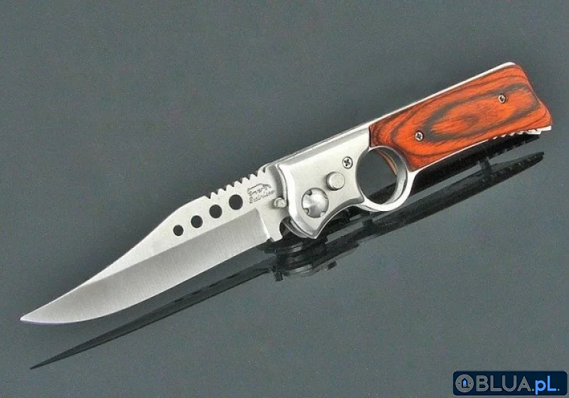 Solidny nóż składany.Nóż posiada blokadę przypadkowego otwarcia i zamknięcia.Otwierany jest automatycznie przez naciśnięcie przycisku po zwolnieniu blokady.Przydatny w drobnych pracach, na grzybach, czy aucie.Wykonany z metalu, rękojeść wykonana z drewna.Długość całkowita: ok 20,5 cm. Długość każdego ostrza: 9 cm.W cenę wliczony jest grawer jednostronny tekstu do 40 znaków na jednym ostrzu noża.Dzięki czemu ten drobiazg dla obdarowanego, stanie się osobistą pamiątką.Zapakowany w pokrowiec z materiału w moro....