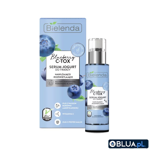 Stosowanie: Codziennie rano i wieczorem wmasuj serum w oczyszczoną skórę twarzy, szyi i dekoltu, pozostaw do wchłonięcia. Stosuj samodzielnie lub razem z kremem z serii Bielenda BLUEBERRY C-TOX dla wzmocnienia efektu nawilżenia. Serum stanowi doskonałą bazę pod makijaż.