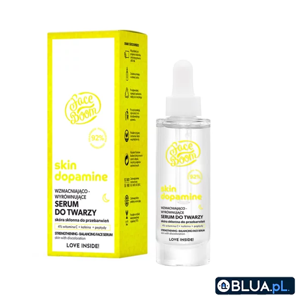 Rano i wieczorem nałóż mnie na oczyszczoną skórę twarzy, szyi i dekoltu i pozostaw do wchłonięcia. Możesz mnie stosować zmiennie z serum silnie nawilżającym FaceBoom Skin Dopamine.