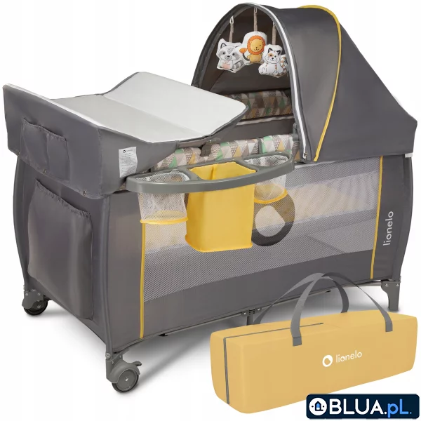 Lionelo Sven Plus Yellow Scandi Łóżeczko turystyczne + Przewijak + Moskitiera