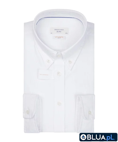 Biała koszula Profuomo z miękkiego oksfordu z kołnierzem na guziki 44