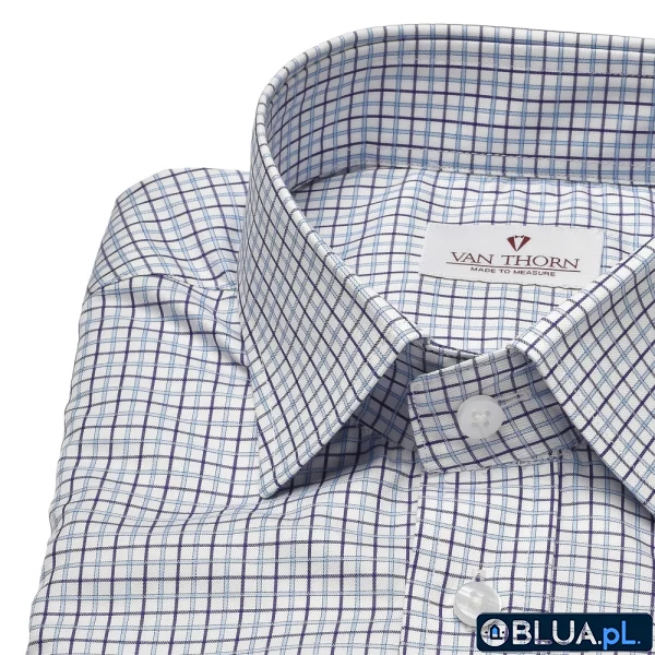 Biała koszula VAN THORN w niebieską i granatową kratę z półwłoskim kołnierzykiem 36