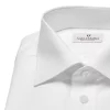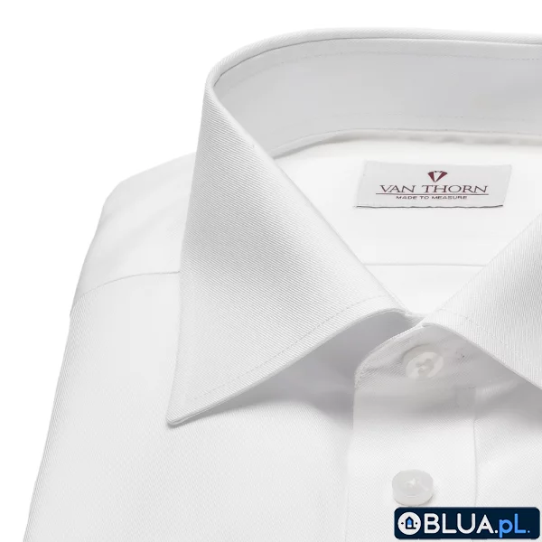 Biała koszula VAN THORN z kołnierzykiem półwłoskim to ponadczasowy model. Ten rodzaj kołnierza pozwala na dobranie do niego zarówno muchy jak i krawata. Śnieżną biel z kolei dopasować można do całej palety barw. W związku z tym jest to jedna z najbardziej uniwersalnych koszul. Biała koszula VAN THORN z kołnierzykiem półwłoskim wykonana z bardzo dobrej jakości bawełny, sprawdzi się w każdej sytuacji. Można założyć ją zarówno do garnituru jak i do jeansów. Klientom zamawiającym koszule VAN THORN dajemy możliwość zamiany rozmiarów, mankietów, kołnierzy i guzików w cenie. Wszystkie koszule VAN THORN są szyte na indywidualne zamówienie to znaczy, że można zmienić wymiary i konfigurację koszuli. Po złożeniu zamówienia zawsze dzwonimy i sprawdzamy wymiary tak aby koszula, którą uszyjemy była idealna. Dodatkowo jest możliwość wyhaftowania inicjałów na koszuli co pozwoli w pełni spersonalizować koszulę
