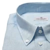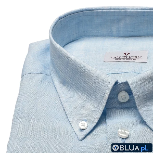 Błękitna lniana koszula VAN THORN z kołnierzem na guziki 36