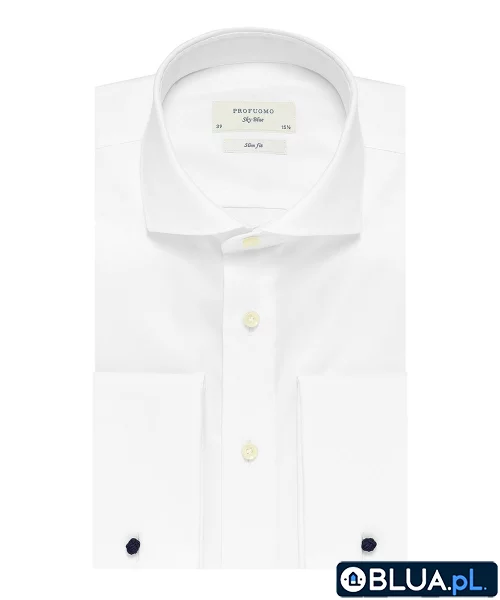 Elegancka biała koszula męska taliowana (SLIM FIT) z włoskim kołnierzykiem i mankietami na spinki 41