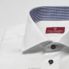 Elegancka biała koszula SLIM FIT z granatowymi guziczkami i wstawkami w kratkę 48