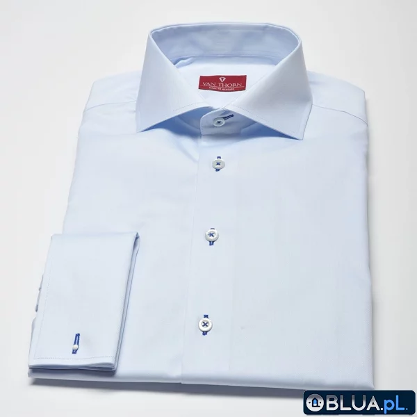 Elegancka błękitna koszula męska VAN THORN Slim Fit z mankietami na spinki 42