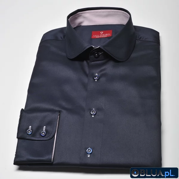 Elegancka granatowa koszula męska VAN THORN Slim Fit z kołnierzykiem typu club - SLIM FIT 38
