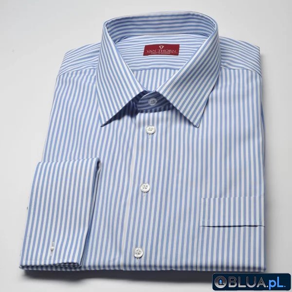 Elegancka koszula męska VAN THORN Slim Fit w biało niebieskie paski 39