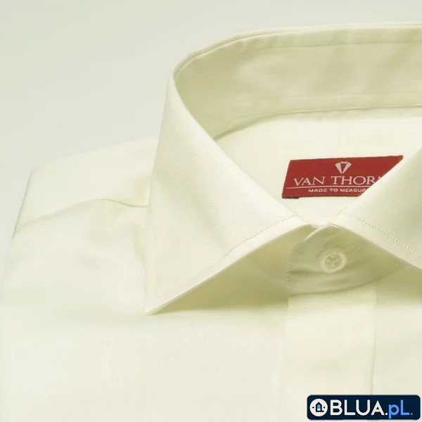 Elegancka śmietankowa (ecru) koszula SLIM FIT z krytą listwą i włoskim kołnierzykiem 50