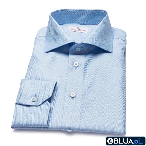 Koszula męska VAN THORN błękitna w jodełkę szyta na zamówienie 38