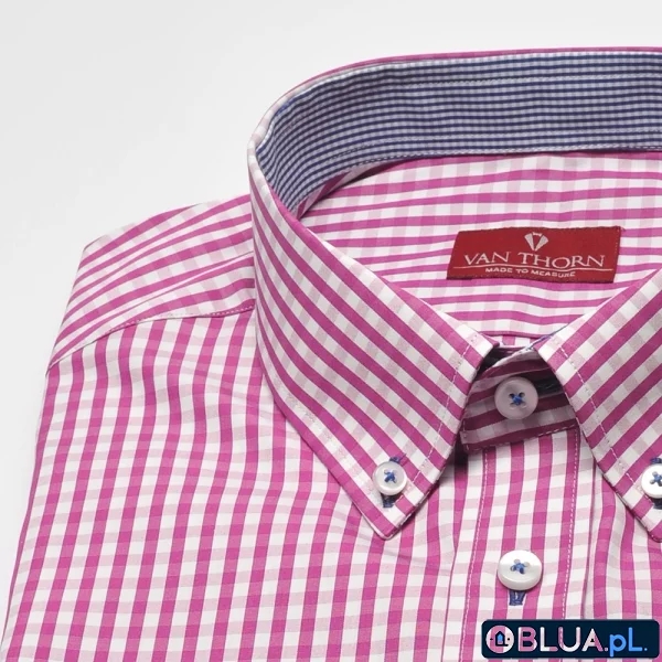 Koszula męska VAN THORN w różową kratę z kołnierzykiem na guziki - NORMAL FIT 37