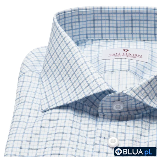 Koszula VAN THORN biała w błękitną kratkę szyta na zamówienie 37