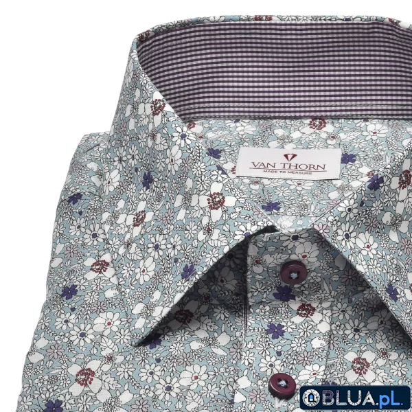 Koszula w kolorze morskim VAN THORN w kwiaty z kołnierzykiem półwłoskim to perfekcyjna propozycja dla osób, które chcą, żeby ich koszula byłą żywa i charakterystyczna. Florystyczny motyw sprawdzi się idealnie na niezobowiązujących przyjęciach oraz w zestawach smart casualowych. Koszula w kolorze morskim VAN THORN w kwiaty z kołnierzykiem półwłoskim została wykonana w całości z bawełny zapewniającej przyjemność noszenia oraz bardzo dobre właściwości termoregulacyjne. Klientom zamawiającym koszule VAN THORN dajemy możliwość zamiany rozmiarów, mankietów, kołnierzy i guzików w cenie.