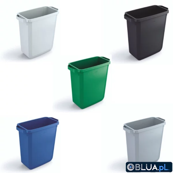 Pojemnik o pojemności 60 litrów marki Durable idealnie sprawdzi się do odpadów i recyklingu. Mocne rączki ułatwiają jego przenoszenie a uchwyty na dnie sprawdzą się w wygodnym opróżnianiu kosza. Pojemnik Durabin wyposażony jest w praktyczne szczeliny do zaczepiania worków na śmieci. Wieloraka gama kolorystyczna umożliwia nadanie pojemnikom innych funkcji.