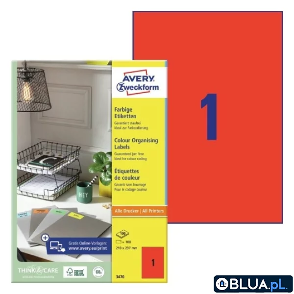 ETYKIETA A4 210X297 TRWAŁE CZERWONE AVERY ZWECKFORM 100 ARK