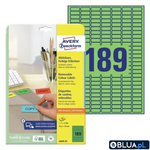 ETYKIETA A4 25,4X10 USUWALNE ZIELONE AVERY ZWECKFORM