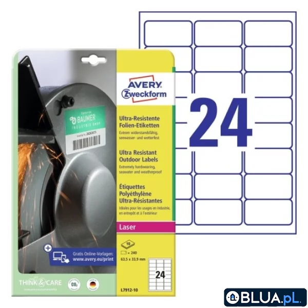 Etykiety foliowe A4 do druku, Avery Zweckform Ultra Resistant L7912-10