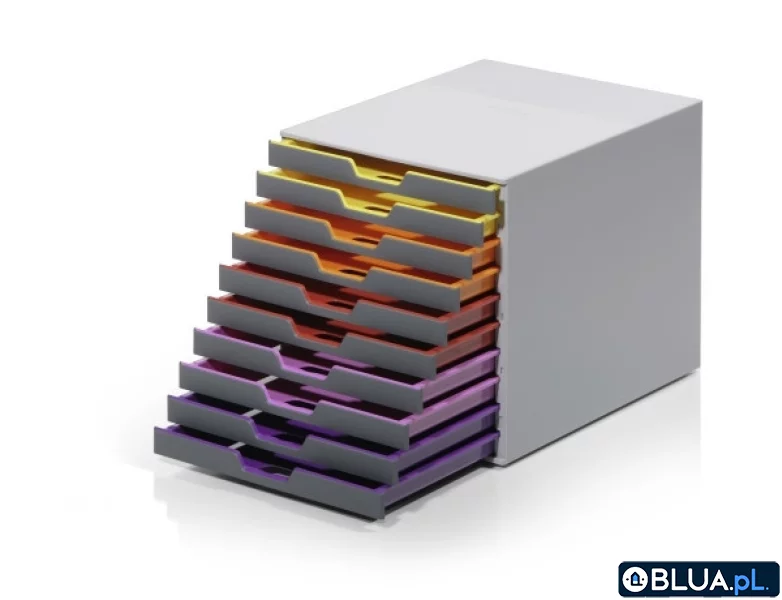 Innowacyjny, funkcjonalny i stylowy pojemnik Varicolor z dziesięcioma szufladkami wykonanymi z najwyższej jakości tworzywa sztucznego. Szufladki posiadają blokady zabezpieczające przed wypadaniem. Wysuwane są bardzo cicho i lekko. Kolorowe linie na brzegach frontów posłużą jako pomoc w porządkowaniu różnego rodzaju dokumentów.