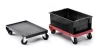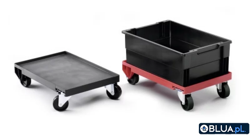 Wózek transportowy na czterech kółkach do przewożenia ciężkich i/lub ustawianych piętrowo skrzynek