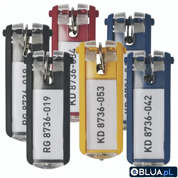 Praktyczny mechanizm zaciskowy ułatwia dostęp do etykiety w okienku do opisania, bez ściągania klucza z metalowego kółeczka. Po zawieszeniu kluczy zawieszka wisi prosto i nie przekręca się. Zawieszka Key Clip posiada miejsce na 2-3 klucze. Każde opakowanie wyposażone jest we wkłady do opisu. Zawieszki do kluczy są w kilku kolorach: czarnym, czerwonym, żółtym i granatowym. W opakowaniu znajduje się 6 sztuk zawieszek (mix kolorów).