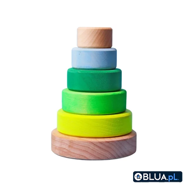 Grimm’s Wieża drewniana dla dzieci 6 krążków – wieża Montessori zabawka układanka Neon Green 1+