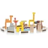 Zestaw zawiera rozmaite klocki w różnych rozmiarach oraz wzorach.