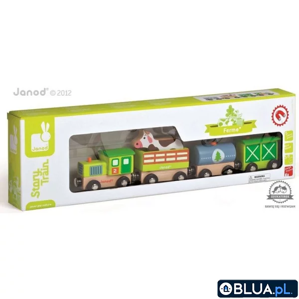 ZESTAW ZAWIERA: 5 elementów: 3 wagoniki, lokomotywę oraz krówkę.