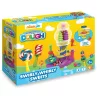 - 2 saszetki masy plastycznej (neonowy zielony, neonowy różowy),