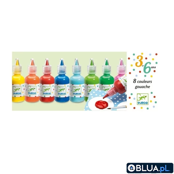 - farbki gwaszowe - 8 kolorów, pędzelek oraz mini paletka do mieszania kolorów.