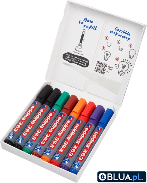 Do wielokrotnego napełniania tuszem uzupełniającym edding BTK 25 (w kolorach czarnym, czerwonym, niebieskim i zielonym)