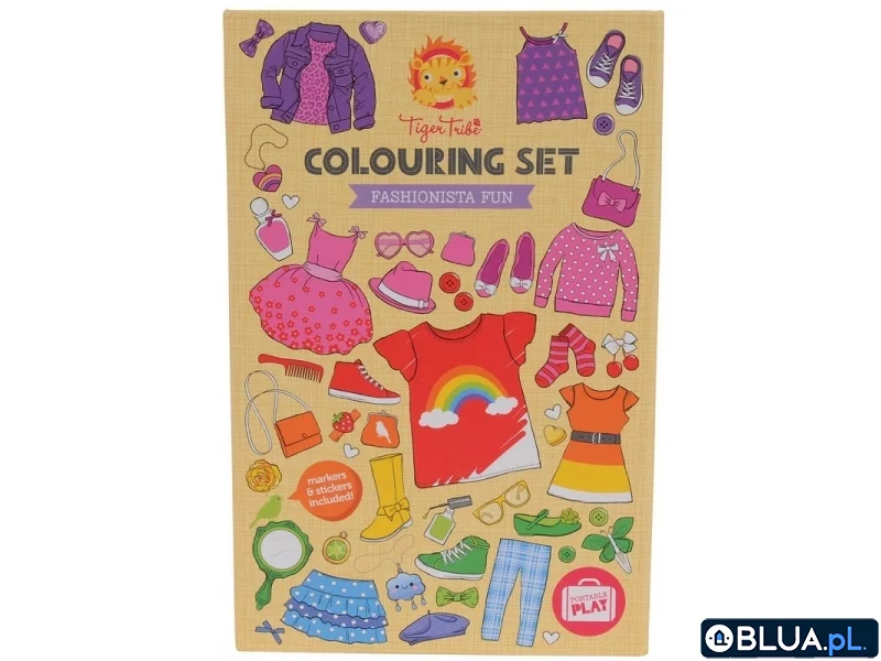 - 5 zestawów naklejek, 10 kolorów flamastrów.