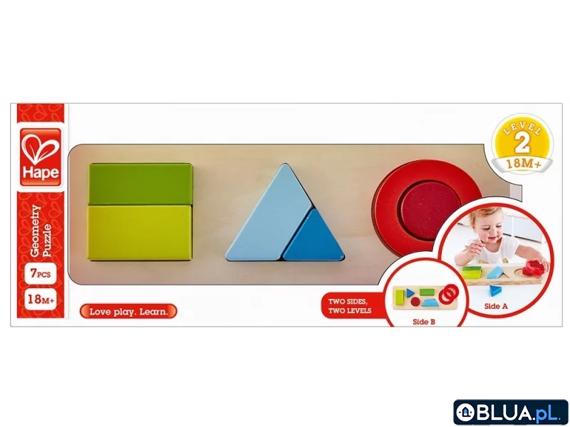 - drewnianą, dwustronna planszę oraz 6 klocków do sortowania