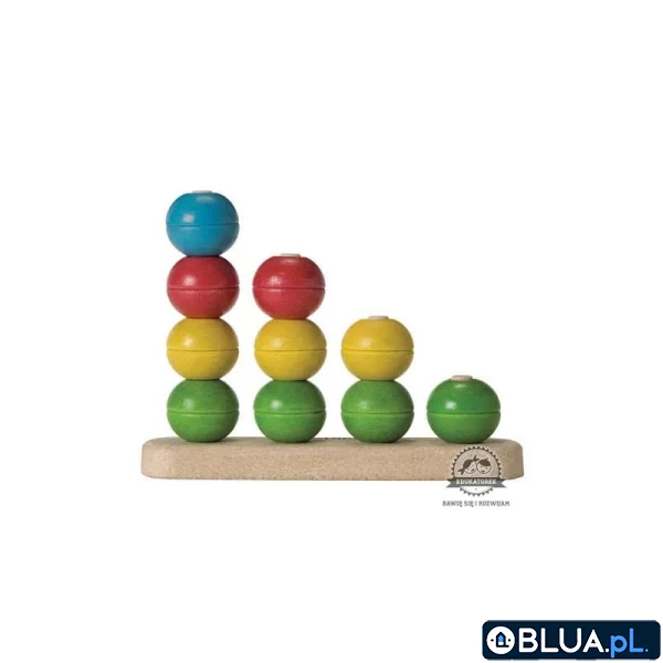 Paliki do nakładania krążków połączone są z podstawą za pomocą elastycznych gumek,