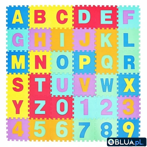 Piankowa mata edukacyjna Szerokie zastosowanie - mata może być używana jako podkładka na podłogę, mata edukacyjna, mata do ćwiczeń gimnastycznych oraz zabawkowe puzzle 36 elementów - zestaw składa się z 36 dużych puzzli z wyjmowanymi piankowymi literami i cyframi Wysokiej jakości pianka EVA - mata została wykonana z wysokiej jakości, odpornej na ścieranie pianki EVA, dzięki czemu gwarantuje wytrzymałość i trwałość Łatwość montażu - matę można ułożyć w dowolną wielkość, płytki są łatwe w montażu i demontażu Łatwość utrzymania w czystości - odporna na wilgoć technologia i wysokiej jakości materiał sprawiają, że matę można łatwo wyczyścić mydłem i wodą