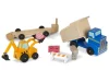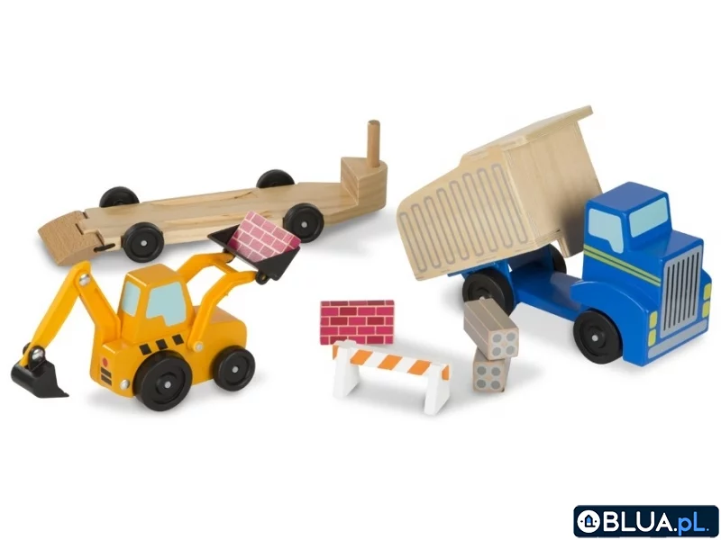 - 3 maszyny drogowe: holownik, koparkę i ciężarówkę.