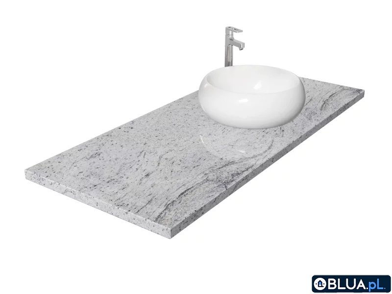 Blat łazienkowy z granitu Kashmir White o imponującej grubości 3cm to połączenie naturalnej piękności kamienia z funkcjonalnością na co dzień. Delikatne jasno-kremowe-szare tło tego granitu, wzbogacone nieregularnymi żyłami w kolorach czerwono-różowym i czarnym, nadaje każdej łazience nutę luksusu i elegancji. Dzięki wyjątkowej trwałości granitu oraz jego odporności na wilgoć, jest to doskonały wybór do łazienki. Grubość 3cm podkreśla jego robustność, nie tracąc przy tym na elegancji. Skompletowany z starannie dobraną armaturą i dodatkami, ten blat będzie wyjątkową ozdobą Twojego łazienkowego wnętrza.