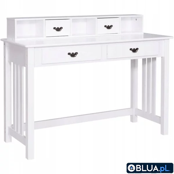 Biurko klasyczne z nadstawką sekretarzyk Chcesz wymienić swoje biurko lub stworzyć miejsce do pracy w domu? Chcesz także mieć pewność, że dokonasz dobrego wyboru? Sprawdź nasze białe biurko klasyczne z nadstawką — sekretarzyk. Jego praktyczne przeznaczenie, dostępna przestrzeń na blacie oraz półki i szuflady, a w tym również klasyczny styl dekoracji — uatrakcyjnią każde wnętrze. Wybierz to biurko z nadstawką 120 cm szerokości, ponieważ zapewni dużo przestrzeni roboczej — sprawdzi się zwłaszcza wtedy, gdy potrzebujesz jej do pracy w domu. Możesz używać tego mebla również jako toaletki w sypialni. Biały sekretarzyk z nadstawką — klasyczne biurko Spędzasz przy biurku wiele czasu? Jeśli tak jest, nie ma nic lepszego niż poświęcenie chwili na uczynienie go przyjemniejszym. Biały sekretarzyk ma do tego odpowiednią nadstawkę, na której możesz ustawić monitor lub głośniki, zdjęcia, rośliny i inne ozdoby. Im więcej czasu spędzasz, pracując przy biurku, tym większą starannością i estetyką powinieneś darzyć tę przestrzeń. Oto przykłady, jakie akcesoria mogą się znaleźć na klasycznym biurku do pracy: lampka stołowa, komputer, telefon, teczki i dokumenty, artykuły papiernicze i biurowe. Wszystkie te przedmioty, które ułatwiają lub po prostu umilają pracę, zajmują miejsce, na które nie zawsze masz miejsce w obszarze roboczym. Dzięki temu, że biurko — biały sekretarzyk wyposażone jest w nadstawkę, a do tego jest dość szerokie (120 cm), możesz pomieścić na nim wiele rzeczy i zachować porządek. Schowaj artykuły papiernicze w szufladach, a przybory biurowe ułóż na nadstawce. Biurko z nadstawką 120 cm i szufladami W pracy - tej w biurze i tej w domu - ważne jest stworzenie zorganizowanego i motywującego środowiska. Biurko klasyczne z nadstawką sekretarzyk posiada szereg atutów. Należą do nich: duża powierzchnia blatu, miejsce na przechowywanie artykułów biurowych (szuflady i półki), przestrzeń na dodatkowe elementy dekoracyjne (nadstawka), elegancki design (okucia i lamelowe boki). Koniec z walającymi się dokumentami i stosami zabazgranych kartek. Teraz wszystko możesz umieścić na nadstawce lub schować do szuflady! Sprawdź też inne nasze produkty i kategorie, które pomogą Ci stworzyć wygodne, ergonomiczne i praktyczne miejsce pracy lub ozdobić pokój. Rozejrzyj się i zastanów nad meblami, które masz w swoim biurze. Wystarczy Ci tylko biurko sekretarzyk? Czy masz wystarczająco dużo szuflad lub półek, aby przechowywać wszystko, czego potrzebujesz? U nas znajdziesz również regały, szafki i krzesła biurowe, które będą pasować do tego mebla. Cechy Duża przestrzeń do przechowywania - zdejmowana nadstawka z 3 otwartymi półkami oraz 4 pojemne szuflady zapewniają dużą przestrzeń do przechowywania. Przestronny blat doskonałe sprawdzi się przy codziennym użytkowaniu Wysokiej jakości materiały - biurko zostało wykonane z wysokiej jakości płyty MDF oraz drewna sosnowego, dzięki czemu gwarantuje wytrzymałość, stabilność i trwałość Klasyczny design - prosty klasyczny styl świetnie sprawdzi się zarówno w domu, jak i w biurze. Ponadczasowa forma doskonale pasuje do każdego motywu dekoracyjnego Łatwość montażu - biurko jest bardzo proste w montażu. Wszystkie elementy potrzebne do instalacji zostały dołączone do zestawu