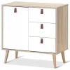 Komoda z 3 szufladami Duża przestrzeń do przechowywania - 3 szuflady oraz 2 zamykane półki z regulacją wysokości zapewniają dużo przestrzeni do przechowywania i organizacji Wysokiej jakości materiały - szafka została wykonana z wysokiej jakości płyt meblowych, dzięki czemu gwarantuje niezrównaną wytrzymałość, stabilność i trwałość Skandynawski design - prosty skandynawski design świetnie sprawdzi się w salonie, sypialni, jadalni oraz biurze. Ponadczasowa forma doskonale pasuje do każdego motywu dekoracyjnego Łatwość montażu - komoda jest bardzo prosta w montażu. Wszystkie elementy potrzebne do instalacji zostały dołączone do zestawu. W celu zwiększenia bezpieczeństwa użytkowania szafkę można przymocować bezpośrednio do ścian
