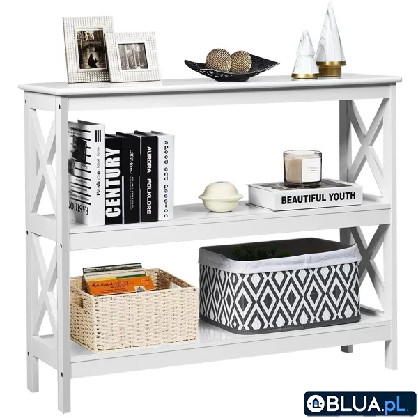 Drewniany stolik boczny Nasz elegancki stół konsolowy będzie doskonałym dodatkiem do każdego domu! Wykonany został z wysokiej jakości płyty MDF, dzięki czemu jest stabilny, wytrzymały i trwały. Łączenia w kształcie litery X po obu stronach zapewniają doskonałą stabilność i zapobiegają zniekształceniom. Oprócz dużego blatu otwarte półki zapewniają dużo przestrzeni do przechowywania książek, zabawek lub innych przedmiotów. Jego gładka powierzchnia jest łatwa do czyszczenia, dzięki czemu można łatwo usunąć kurz za pomocą miękkiej, wilgotnej ściereczki. Trwała i mocna konstrukcja: Stół wykonany został z wysokiej jakości płyty MDF, dzięki czemu jest trwały i wytrzymały. Łączenia nóżek w kształcie litery X po obu stronach zwiększają ogólną stabilność. Praktyczny i uniwersalny: Nasz stolik może być również używany jako stolik boczny dostawiany do sofy lub ustawiony w przedpokoju, regał wystawowy w kuchniach i barach. Dzięki niewielkim rozmiarom nie zajmuje on dużo miejsca w pomieszczeniu i dlatego doskonale sprawdzi się w pokojach z ograniczoną przestrzenią. Dużo miejsca: Przestronny blat pomieści filiżanki, laptop, zdjęcia, wazony i inne przedmioty oraz dekoracje. Dolna otwarta półka zapewnia łatwy dostęp do przechowywanych rzeczy. Rustykalny i industrialny design: Nasz stolik konsolowy posiada czysty i klasyczny design, co nadaje mu prosty i stylowy wygląd. Dzięki temu pasuje do stylów wyposażenia niemal wszystkich wnętrz. Doskonale sprawdza się umieszczony w salonie lub przedpokoju. Proste czyszczenie i montaż: Dzięki dołączonej do zestawu szczegółowej instrukcji oraz wszystkim niezbędnym akcesoriom montaż stolika jest prosty i szybki. Ponadto jego gładka powierzchnia ułatwia utrzymanie go w czystości, a wszelkie zabrudzenia na blacie można łatwo zetrzeć wilgotną ściereczką. Paczka z produktem zawiera: 1 x stolik 1 x instrukcja