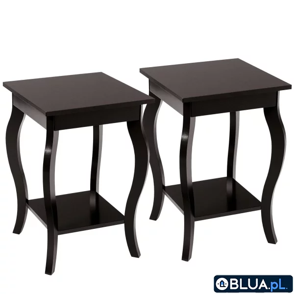 Zestaw 2 eleganckich drewnianych stolików bocznych ciemnobrązowych