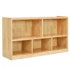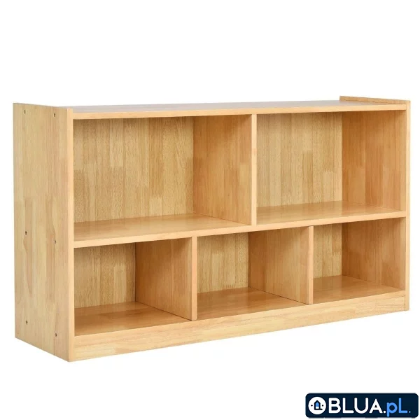 Szafka na zabawki - organizer Nasza dwupoziomowa szafka na zabawki dla dzieci pozwoli utrzymać porządek w każdym pokoju. 5 różnych przegródek i przestronny blat zapewnia dużo miejsca na zabawki, książki dla dzieci i ubranka. Solidna drewniana konstrukcja zapewnia doskonałą stabilność i wytrzymałość. Ponadto jej wysokość została przystosowana do użytku przez najmłodszych. Doskonale sprawdzi się umieszczona w salonie, sypialni, biurze, kuchni lub w przedszkolu. Przemyślany design: Wymiary szafki wynoszą 111 cm x 30 cm x 61,5 cm (dł. x szer. x wys.), dzięki czemu jest odpowiednia dla dzieci. Jej wszystkie rogi i krawędzie zostały zaokrąglone, aby uniknąć spowodowania przypadkowych obrażeń podczas codziennego użytkowania. Przestronny schowek: 5 przegródek na dwóch poziomach pozwala optymalnie wykorzystać dostępną przestrzeń. Znakomicie sprawdzą się one do przechowywania zabawek, książek i innych rzeczy. Szafka przystosowana jest do dzieci powyżej 3 lat. Stabilna konstrukcja i bezpieczny materiał: Szafka wykonana została z wytrzymałej sklejki, dzięki czemu jest trwała i wytrzymuje do 20 kg obciążenia. Materiał ten jest przyjazny dla środowiska oraz bezwonny. Wzmocniona podstawa zwiększa stabilność konstrukcji. Wszechstronne zastosowanie: Naturalna gładka powierzchnia i różnej wielkości przegródki sprawiają, że szafka idealnie nadaje się do przechowywania zabawek i akcesoriów. Doskonale sprawdzi się również jako regał na książki lub szafka na buty. Można ją umieścić w salonie, sypialni, biurze lub kuchni. Wygodne utrzymanie porządku: Dzięki naszej szafce na zabawki dzieci uczą się utrzymywać porządek. Jej powierzchnia jest odporna na zarysowania oraz łatwa do utrzymania w czystości przy użyciu jedynie wilgotnej ściereczki. Ponadto dzięki dołączonej do zestawu szczegółowej instrukcji oraz wszystkim niezbędnym akcesoriom montaż jest prosty i szybki.